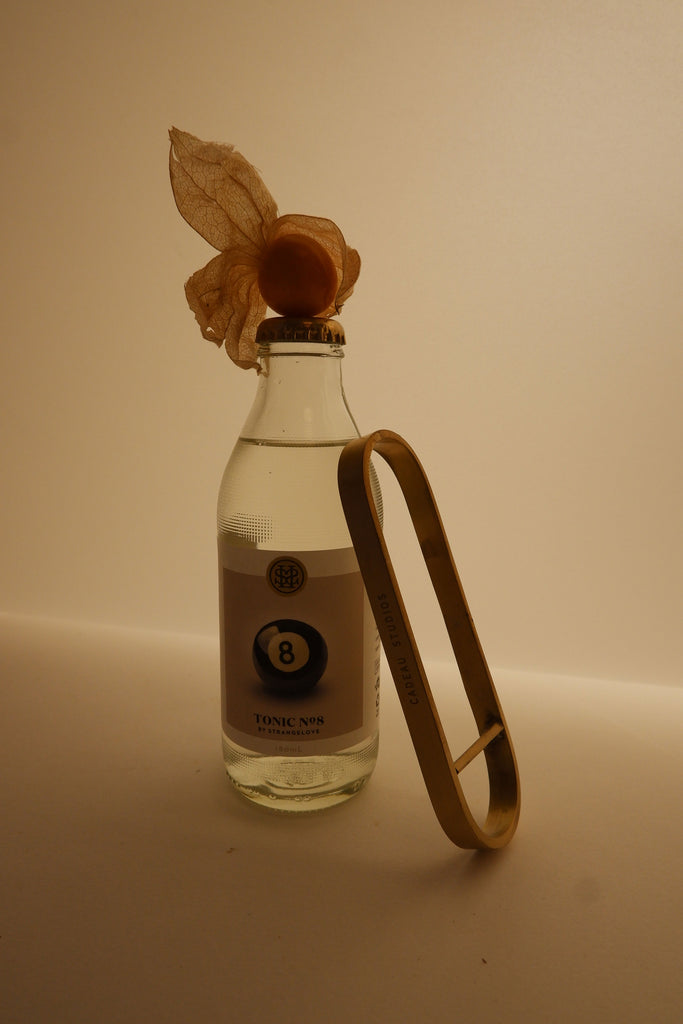 A unique bottle opener, made from solid brushed brass and stylish enough to sit pretty on your kitchen shelf.