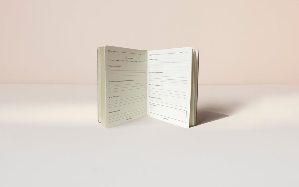 A daily practice for a happier life. You just need five minutes, morning and night with our custom daily reflection journal.